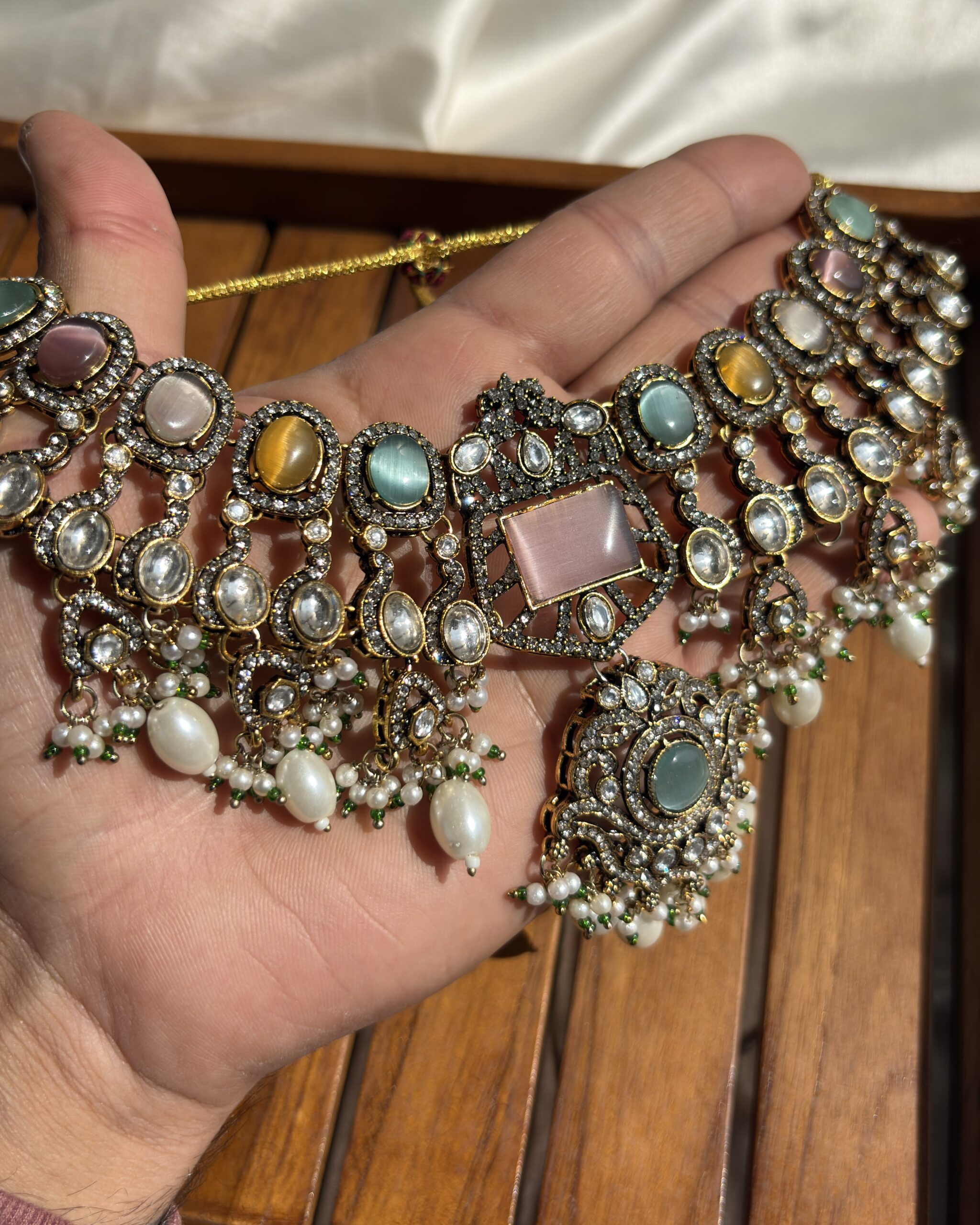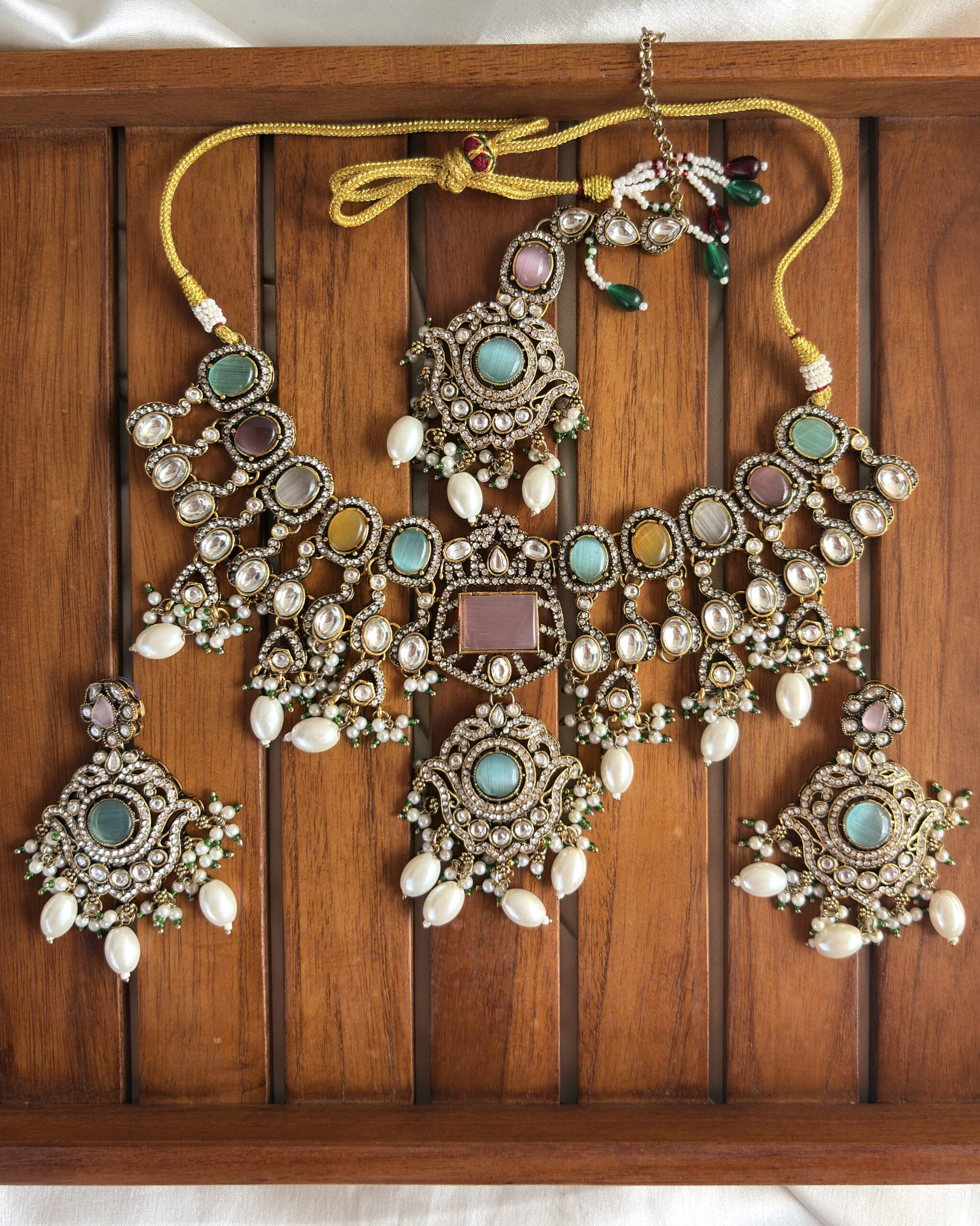 Necklace + Matching EarringsAdjustable dori for comfortIdeal for bridal and festive wear