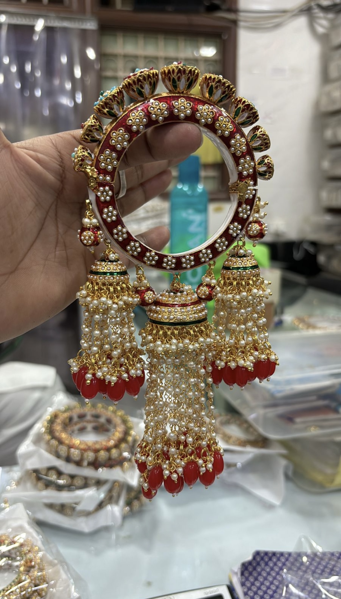 Featuring traditional screw fastening for a secure fit, these bangles showcase rich patterns and long-lasting polish. Ideal for festive celebrations, weddings, or everyday grace, they effortlessly blend royal heritage with modern wearability.
