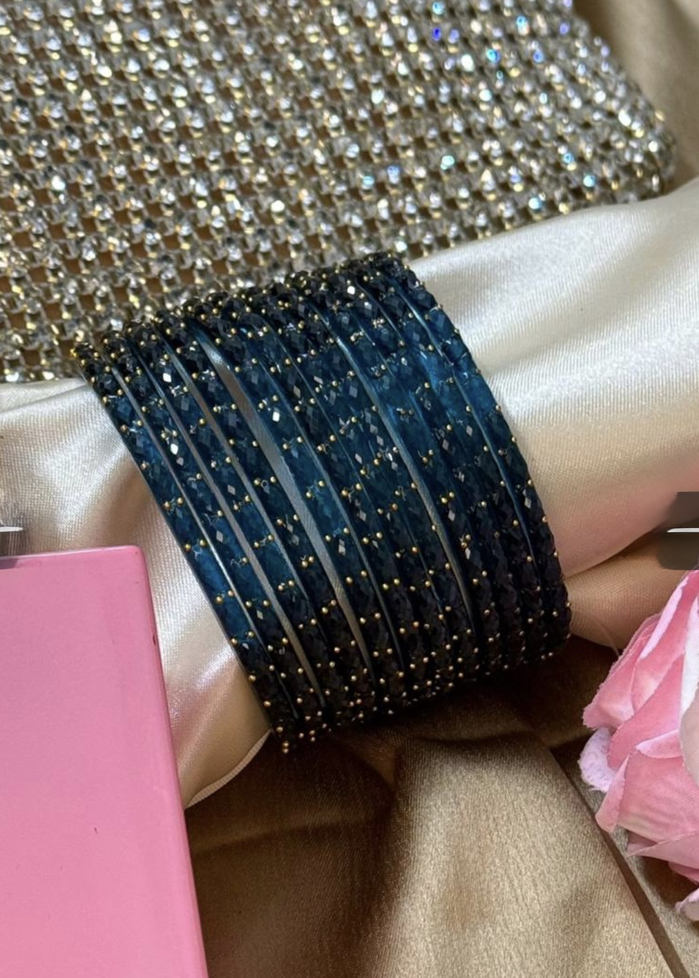 In Indian tradition, glass bangles are considered highly auspicious, symbolizing prosperity, good fortune, and the divine blessings of Goddess Lakshmi. Wearing them daily is believed to attract positivity, enhance feminine grace, and invite abundance into life. On weddings, festivals, and special occasions, they hold even deeper significance—representing joy, harmony, and the eternal bond of tradition.