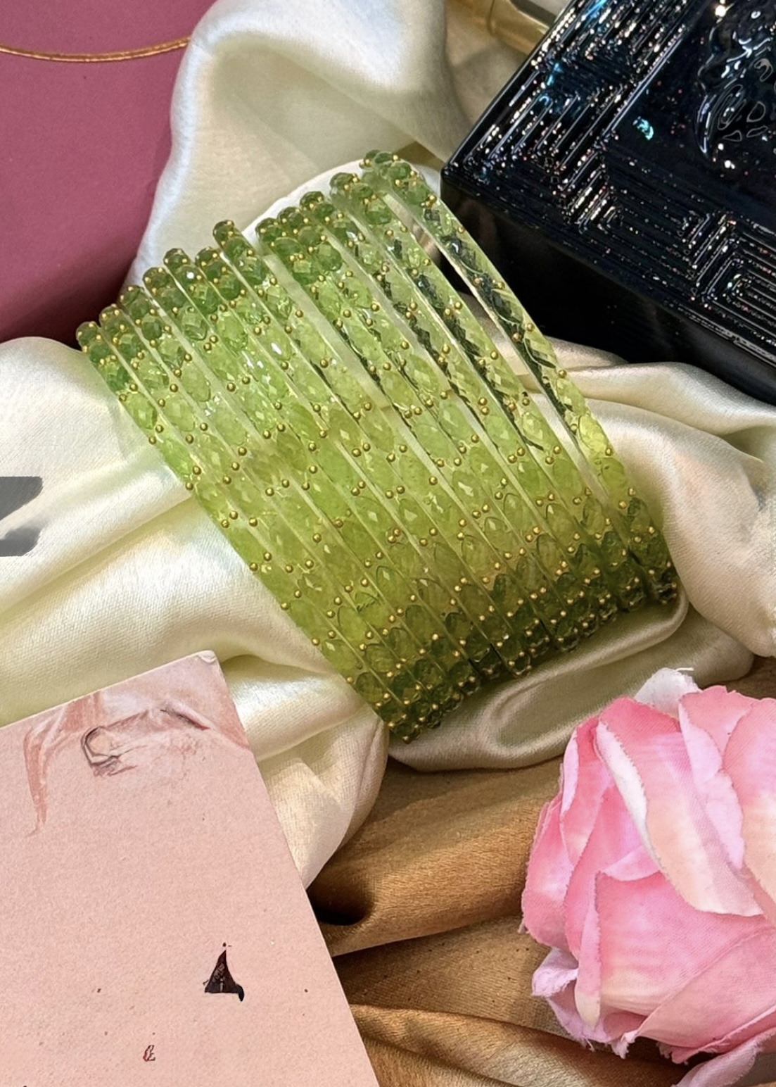 In Indian tradition, glass bangles are considered highly auspicious, symbolizing prosperity, good fortune, and the divine blessings of Goddess Lakshmi. Wearing them daily is believed to attract positivity, enhance feminine grace, and invite abundance into life. On weddings, festivals, and special occasions, they hold even deeper significance—representing joy, harmony, and the eternal bond of tradition.