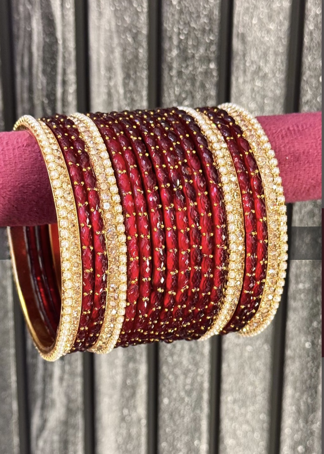In Indian tradition, glass bangles are considered highly auspicious, symbolizing prosperity, good fortune, and the divine blessings of Goddess Lakshmi. Wearing them daily is believed to attract positivity, enhance feminine grace, and invite abundance into life. On weddings, festivals, and special occasions, they hold even deeper significance—representing joy, harmony, and the eternal bond of tradition.