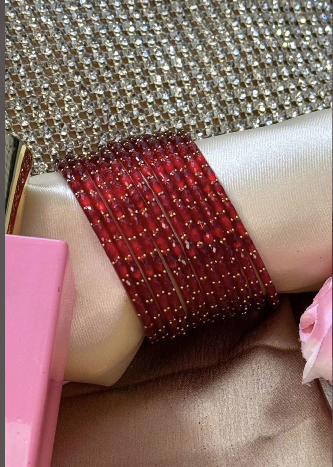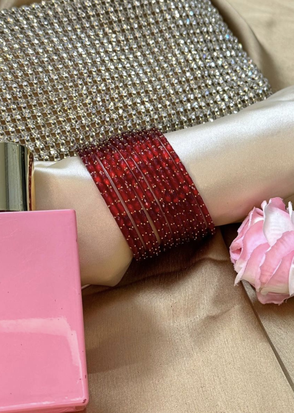 In Indian tradition, glass bangles are considered highly auspicious, symbolizing prosperity, good fortune, and the divine blessings of Goddess Lakshmi. Wearing them daily is believed to attract positivity, enhance feminine grace, and invite abundance into life. On weddings, festivals, and special occasions, they hold even deeper significance—representing joy, harmony, and the eternal bond of tradition.